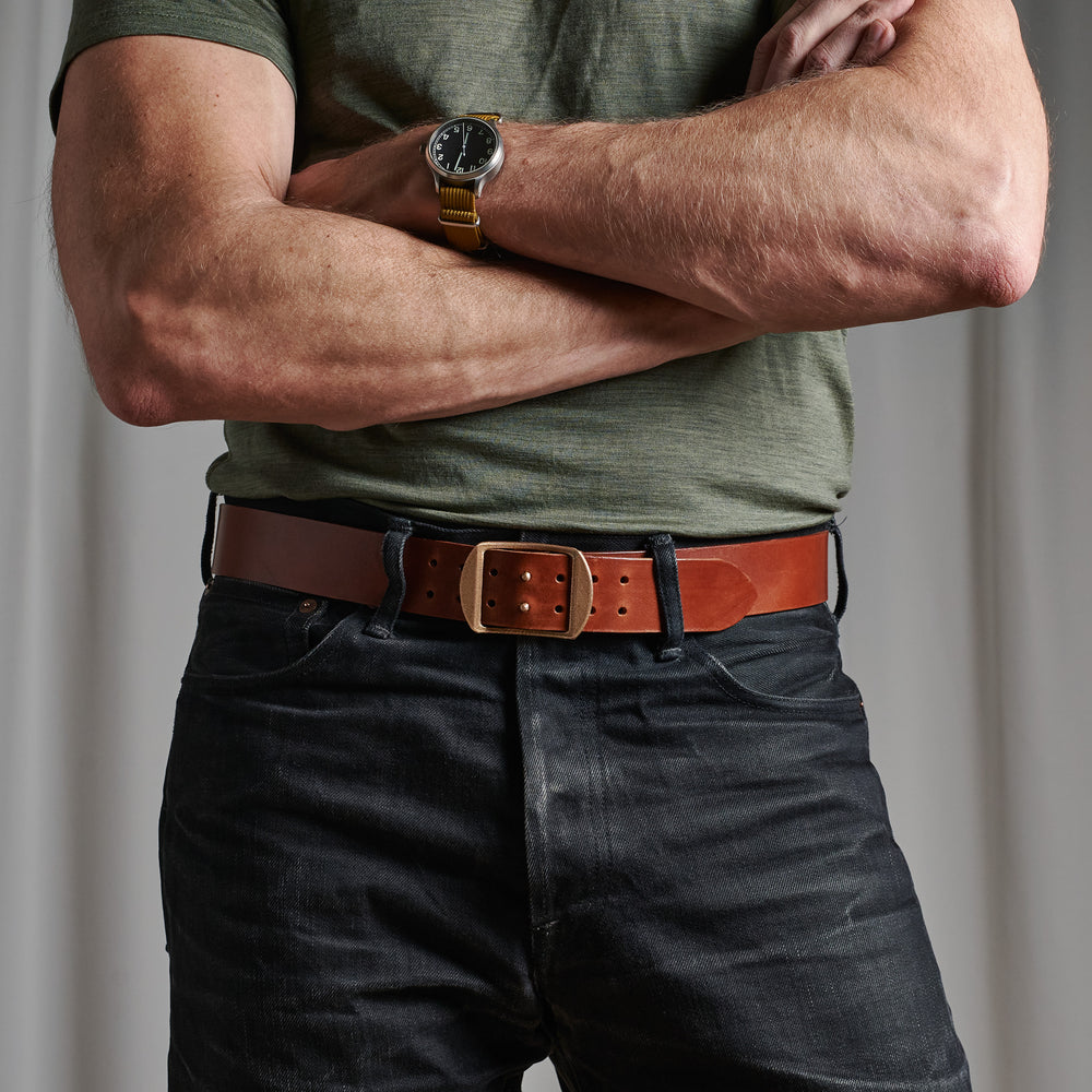 Die Gürtel sind aus 3 mm vegetabil gegerbtem Leder gefertigt, mit von Hand sorgfältig abgerundeten und polierten Kanten. Das Ergebnis ist ein Gürtel, der darauf ausgelegt ist, seinem Träger ein Leben lang zu dienen.