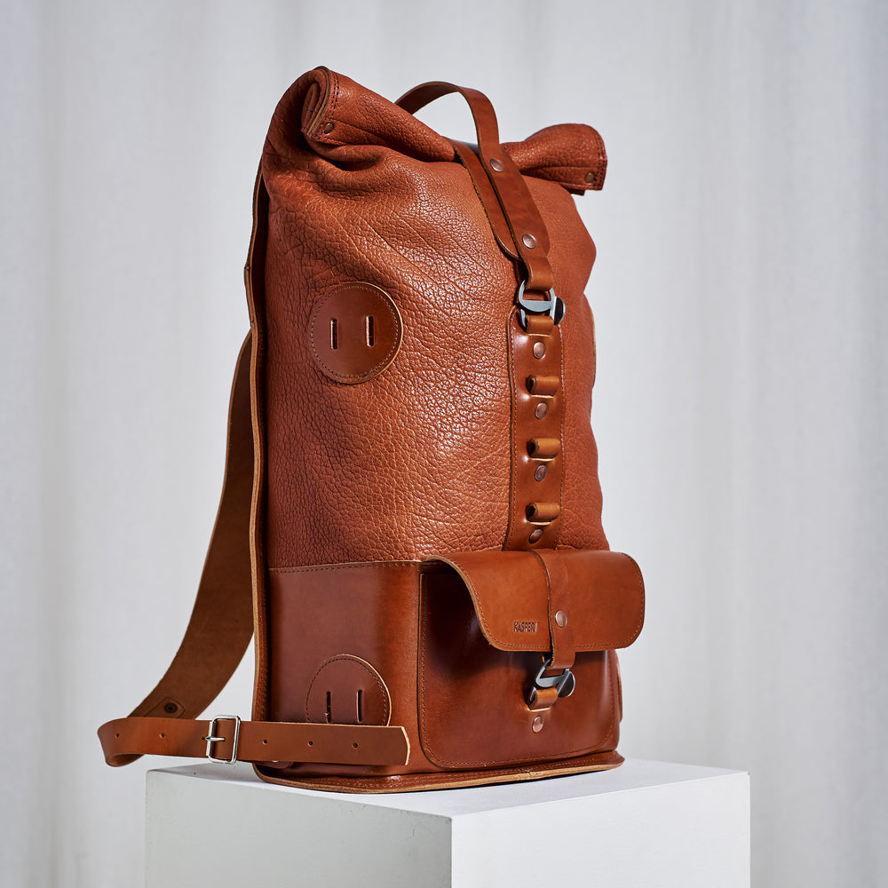 Die hervorragenden Eigenschaften des Leders wurden im Design berücksichtigt. Wir haben pflanzlich gegerbtes Yak- und Rindsleder an Stellen verwendet, an denen ihre Eigenschaften am besten zur Geltung kommen. Das robuste Rindsleder wird für den Rahmen verwendet, der der Tasche ihre Struktur verleiht, das weiche, aber zähe Yakleder wird im faltbaren Teil der Tasche verwendet.