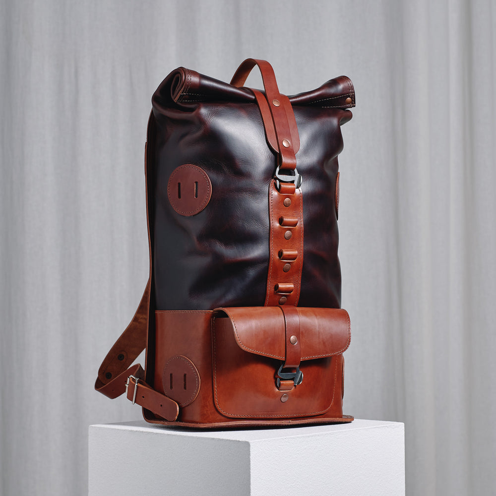 Nous avons un pull-up cuir de bovin à tannage végétal de Conceria Virgilio pour la partie pliante de ce pack, afin d'expérimenter une pièce unique. Pull-up Le cuir bovin de Conceria est un cuir riche en cire et en huile, c'est-à-dire que la cire et l'huile sont infusées dans le cuir au cours du processus de tannage. Cela permet d'obtenir un cuir particulièrement souple et extrêmement résistant aux craquelures. Il présente également une évolution particulièrement intéressante au fil du temps : lorsque le cuir s'étire, tire ou se plie sur lui-même, le cuir s'éclaircit à partir des zones tirées, ce qui donne lieu à de magnifiques plis. C'est ce que l'on appelle le pull-up effet. Vous pouvez restaurer l'effet dark de la couleur en frottant avec la main pour chauffer le cuir, et l'étoffe se transforme presque par magie. dark brown comme par magie. Nous nous attendons à ce que ces sacs développent une patine remarquable au fil du temps.
