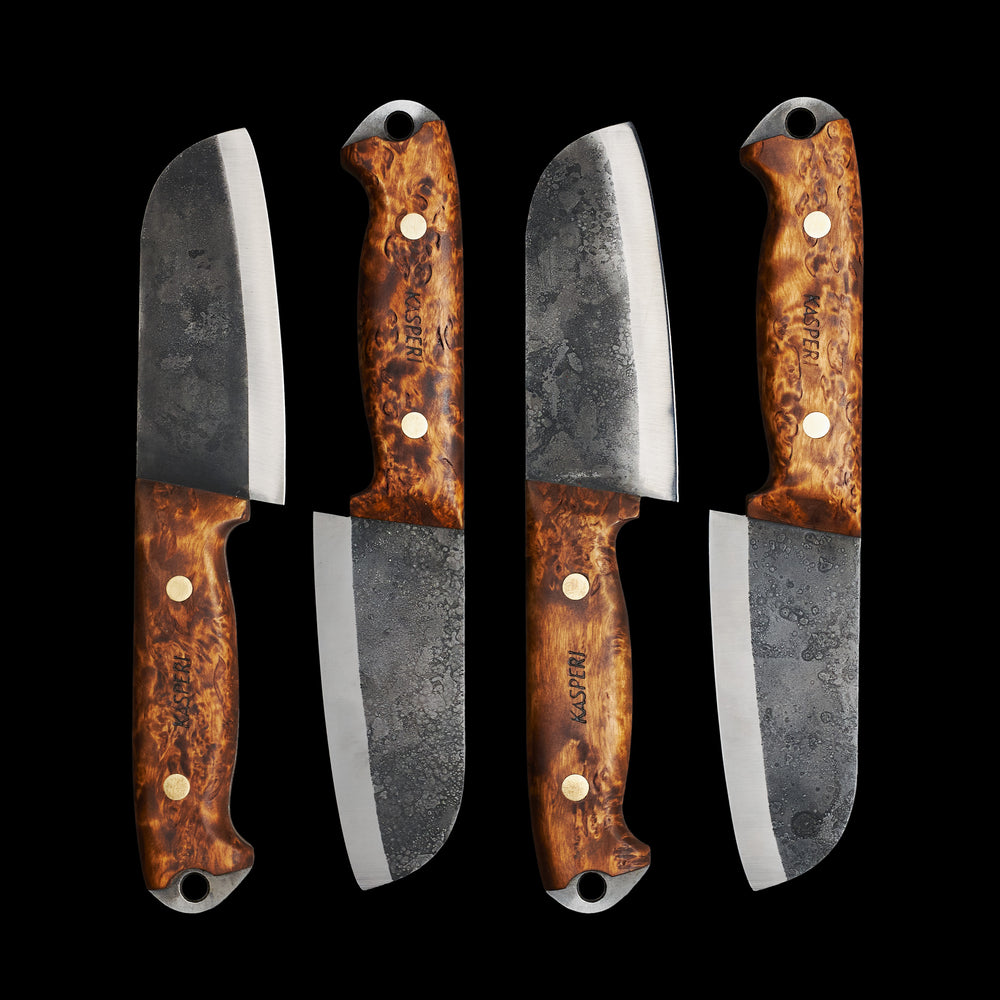 Conçu avec fonctionnalité et durabilité à l'esprit, le Couteau de Chef de Campagne est un outil de confiance pour les aventures culinaires en extérieur. Son design unique à soie pleine et sa prise en main en font un compagnon fiable pour vos aventures. Sa lame en acier au carbone assure une netteté exceptionnelle et des performances durables. La belle poignée en birch bouclée offre une prise sûre, même dans des conditions difficiles. Chaque couteau est livré avec un étui en cuir Kasperi sur mesure pour un transport sûr et protégé.