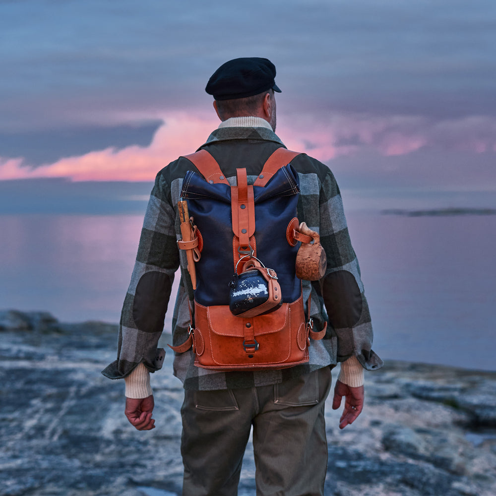 Fold Top Olive & Brown – 가죽 백팩